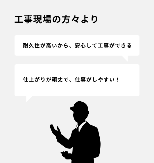 城西工業で製作した部品は、どこかの現場で役に立っています。部品を使用して工事を行う作業員の方々や、工事が完了した後にその現場を使用する人々の為に、常に安全第一で高品質な製造を目指します。