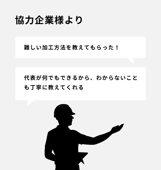 城西工業では、ビジネスパートナーとして、ともに発展し成長できる協力会社様を募集しています。大手企業様との取引きもございますので、安定した仕事量を提供することが可能です。